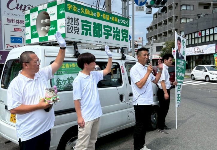#地域政党京都宇治党#地域政党京都久御山党#地域政党京都八幡党等の皆様で街宣活動。地方政治、地域政党は党利党略に左右されず市民一人ひとりの代弁と議論を迅速にきめ細かくできる事を話しました。#金ヶ崎秀明#芦田ゆうすけ#叶善之#地域政党